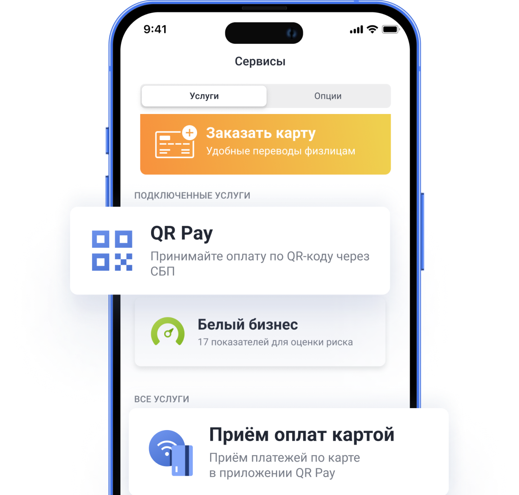 Работайте с финансами бизнеса и подключайте дополнительные услуги
